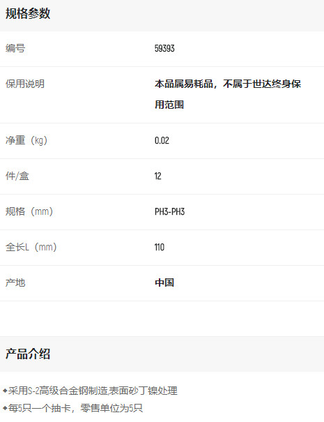 產(chǎn)品名字:世達6.3mm系列65mm長雙頭旋具頭PH3-PH3