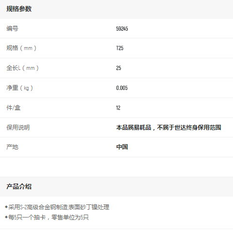 首頁>產品中心>螺絲批>旋具頭>世達5件套6.3MM系列25mm長中孔花型旋具頭T25