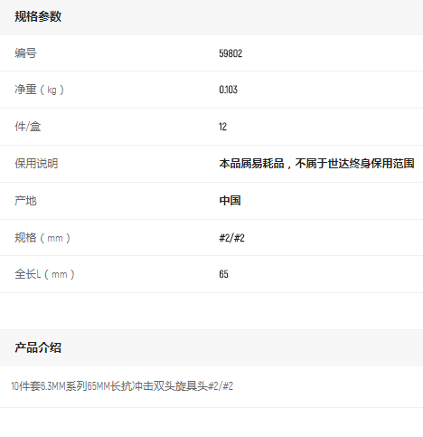 產(chǎn)品名字:世達(dá)10件套6.3MM長(zhǎng)抗沖擊雙頭旋具頭#2/#2