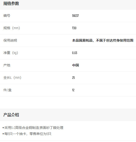 產(chǎn)品名字:世達(dá)5件6.3mm系列長(zhǎng)花形旋頭T30