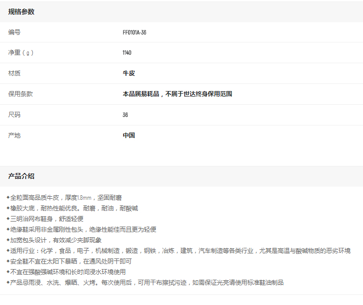產品名字:世達標準款多功能安全鞋保護足趾