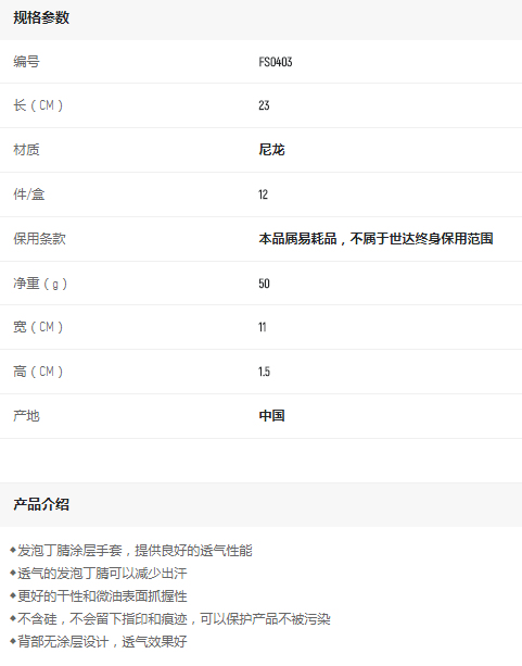 產(chǎn)品名字:世達(dá)丁腈手套(掌浸)9寸