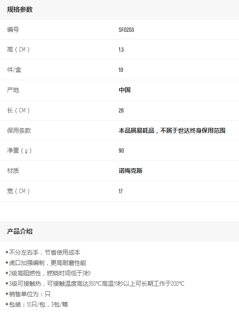 首頁>產品中心>手部防護>手套>世達諾梅克斯耐高溫手套