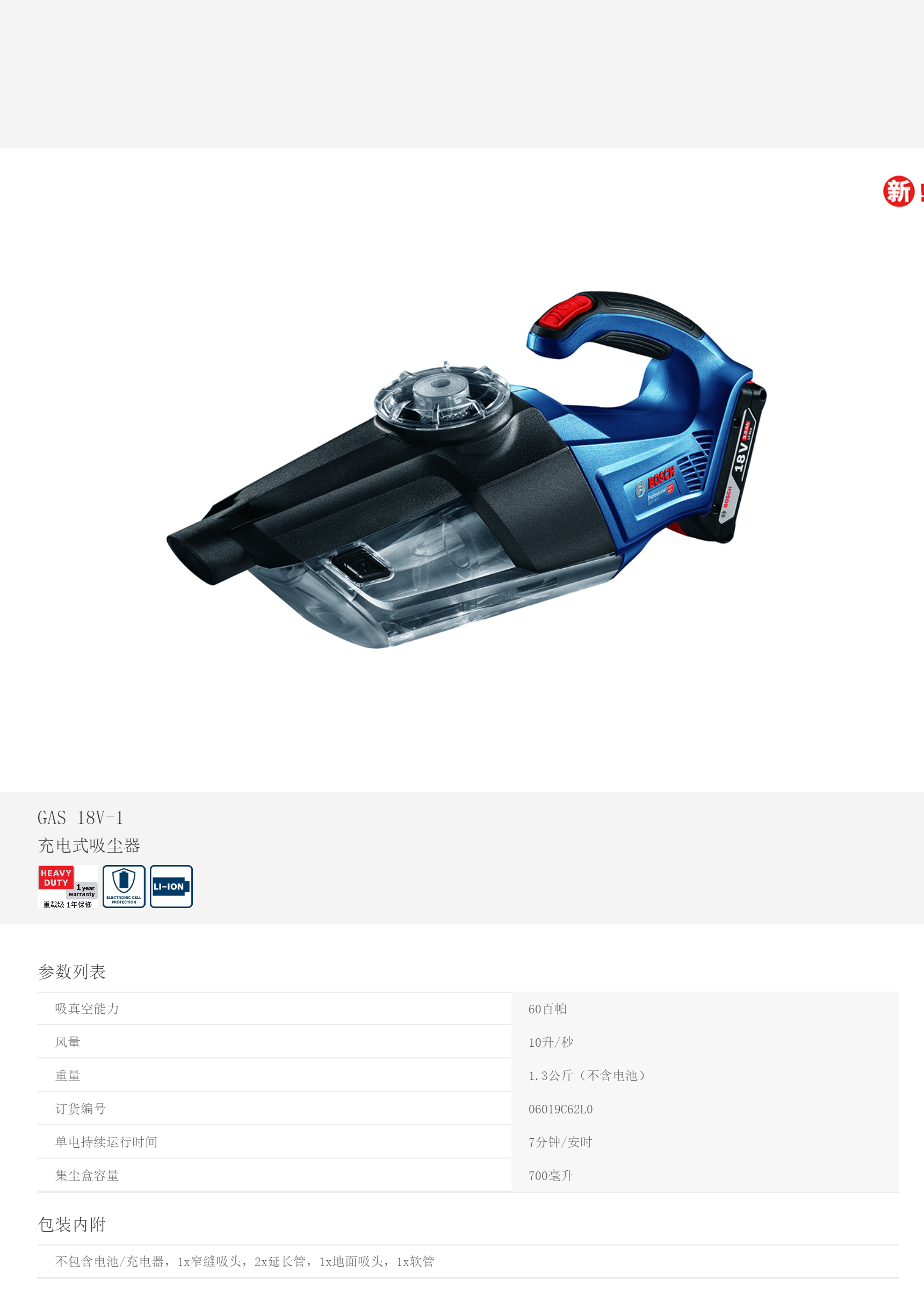 產品名字:博世充電吸塵器GAS18V-1