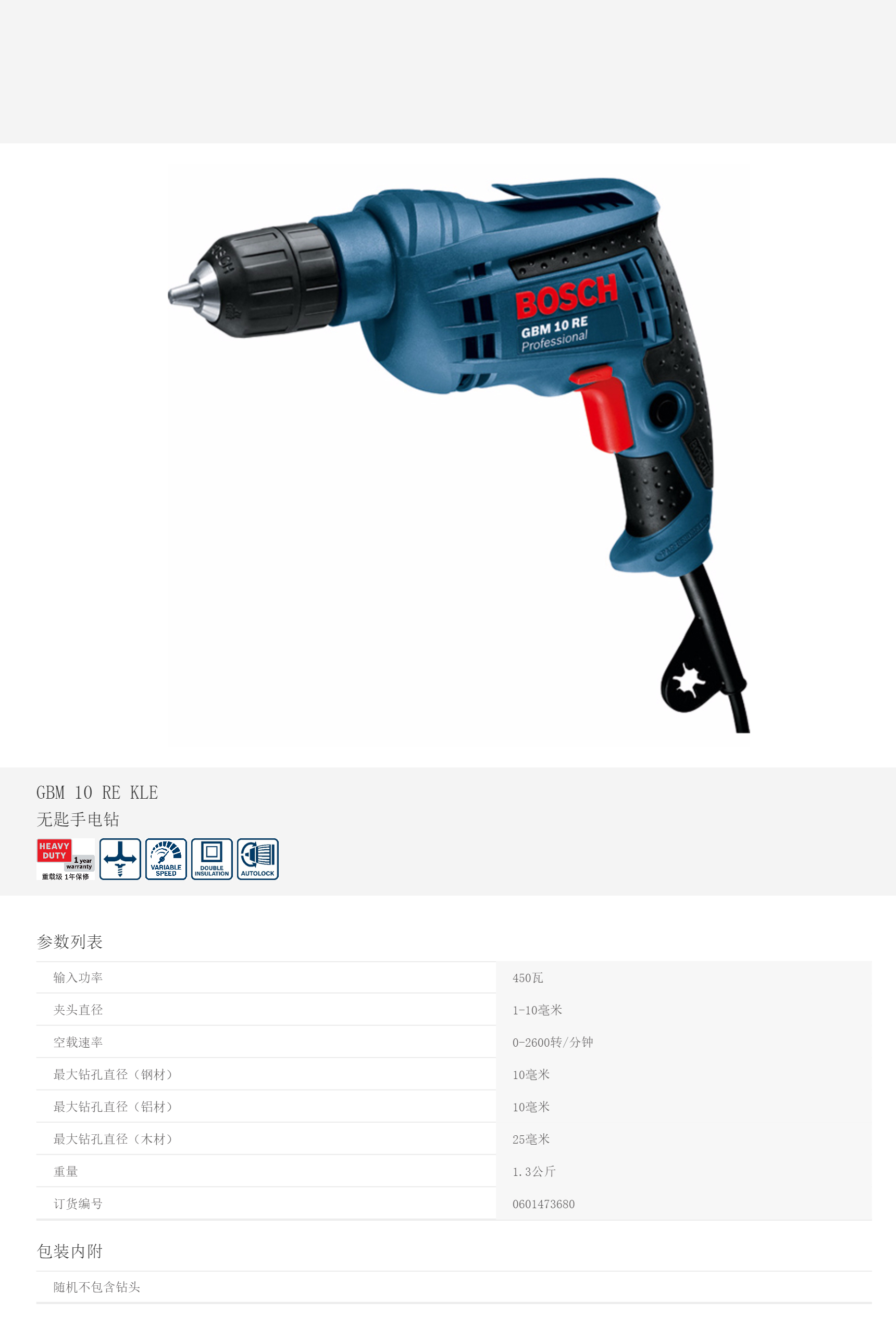 首頁>產品中心>電動工具>電鉆/沖擊鉆>博世手電鉆GBM10REKLE
