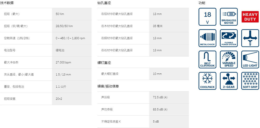 產(chǎn)品名字:博世充電式?jīng)_擊電鉆GSB18V-50