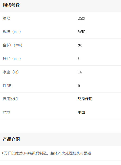 首頁>產(chǎn)品中心>螺絲批>一字螺絲批>世達(dá)A系列一字批8*250mm