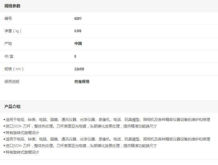 首頁>產(chǎn)品中心>螺絲批>一字螺絲批>世達微型一字批3x100mm