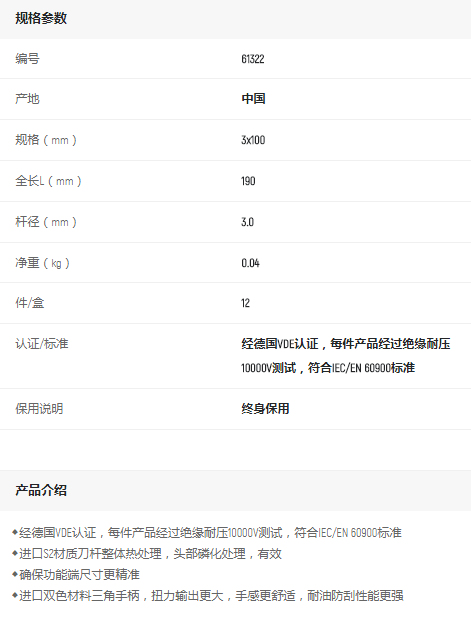 產(chǎn)品名字:世達(dá)一字絕緣螺絲批3*100MM