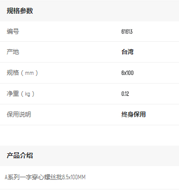 首頁>產品中心>螺絲批>其他螺絲批>世達A系列一字穿心螺絲批6*100MM